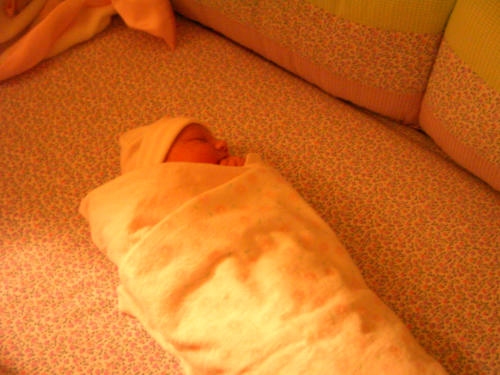 Here's Madi in her crib. Probably the first and last time she slept in there, hahaha.