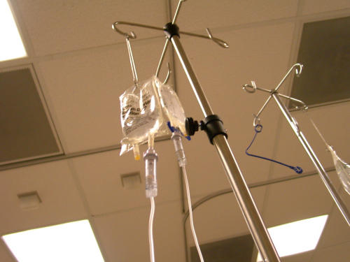 For the first month of treatment I had to have interferon dripped into me for about an hour. Basically these here bags had to be empty before I could go home.
